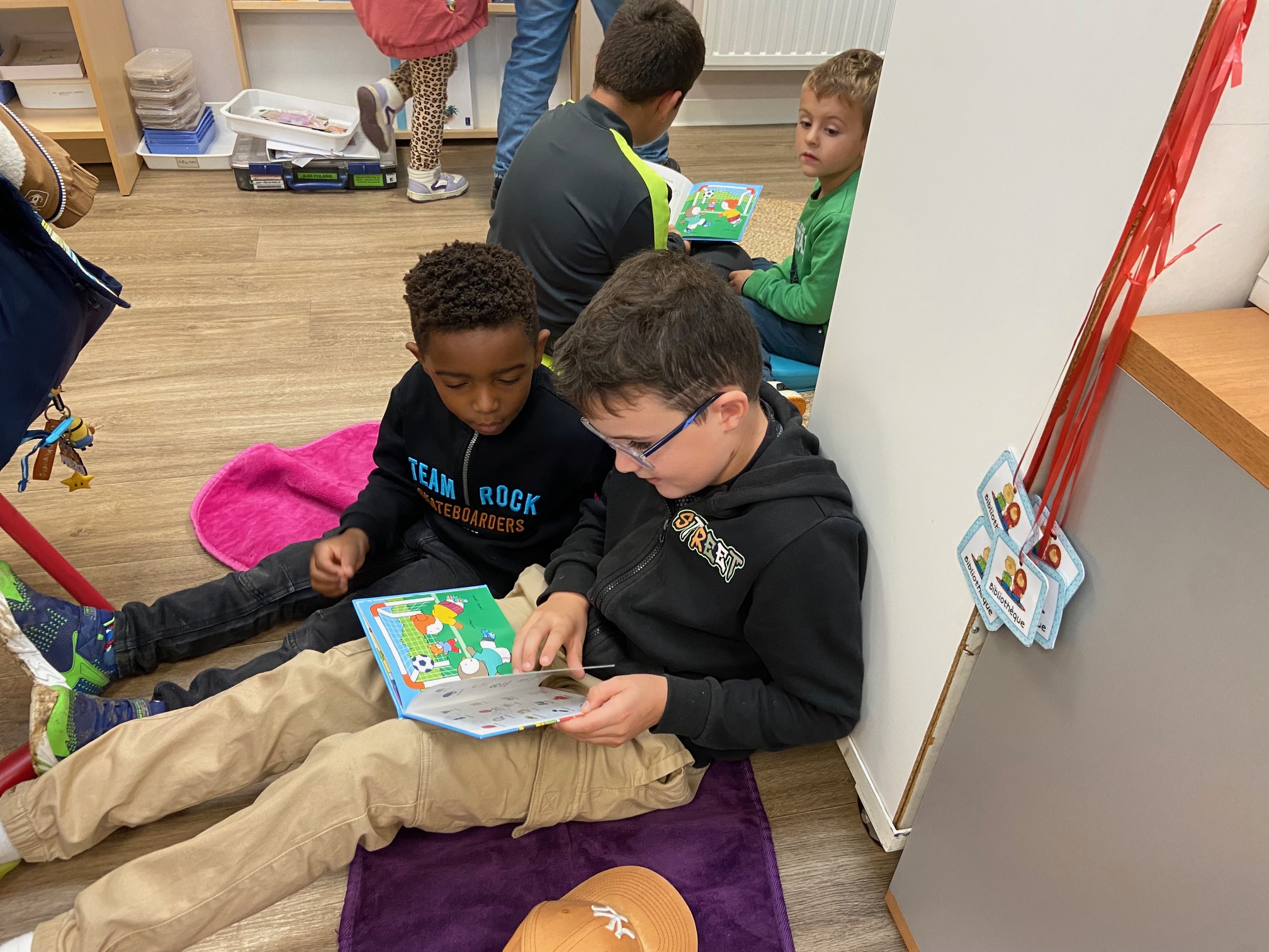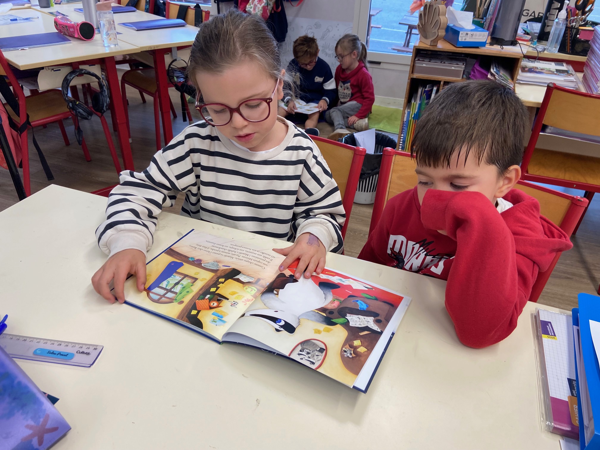 Les plus grands se sont fait un plaisir de lire des histoires aux plus petits, qui les écoutaient avec attention et admiration. Ce temps d’échange a permis à chacun de découvrir le plaisir de lire ensemble, dans le calme et la bienveillance. Avec un temps pluvieux, les élèves se sont répartis dans les différentes classes.