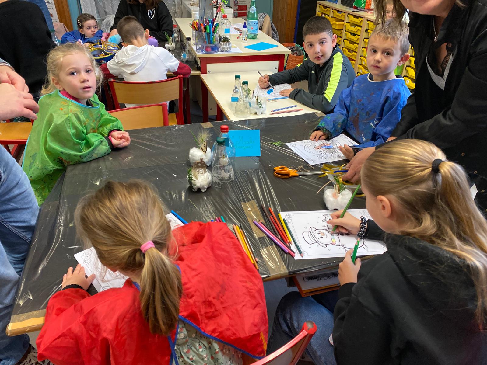 Comme chaque année, les enseignants ont organisé les ateliers multi-âges afin de fabriquer un bricolage vendu au marché de Noël. Ces 2 vendredis sont toujours appréciés des enfants comme des parents qui ont la possibilité de venir bricoler avec leurs enfants.