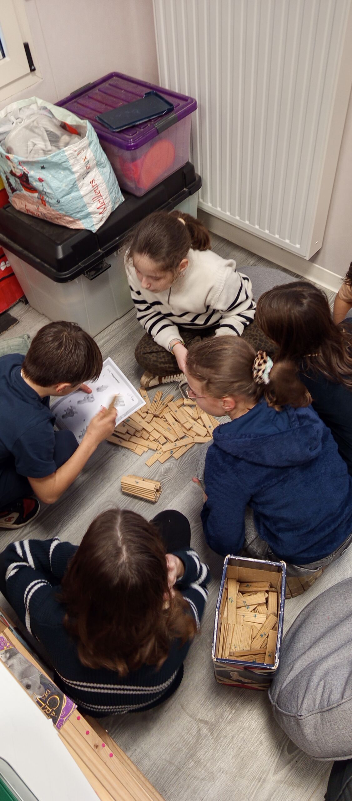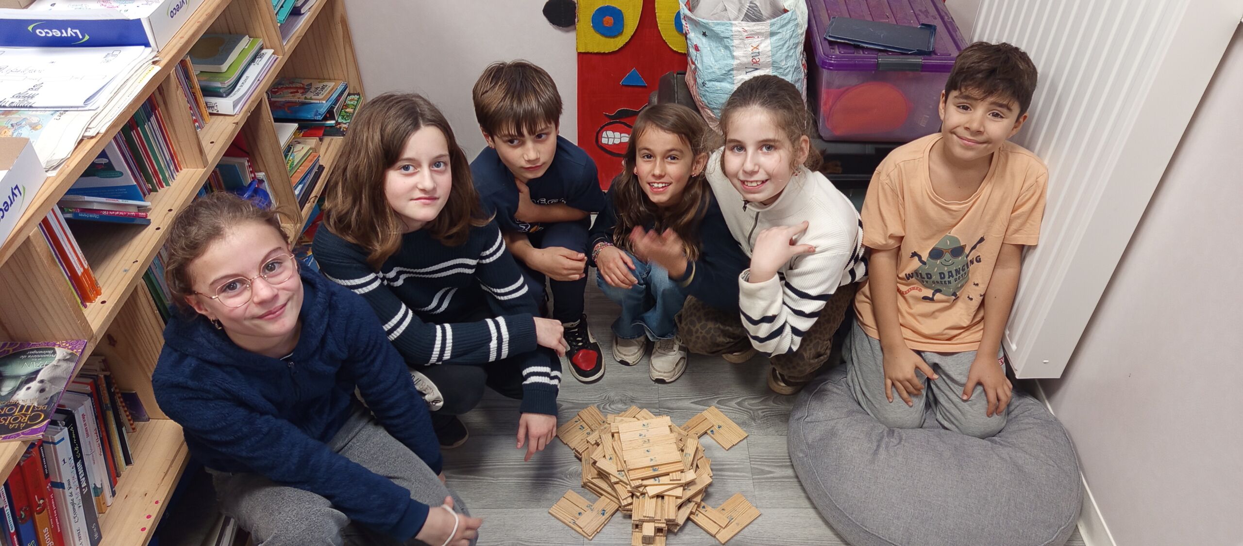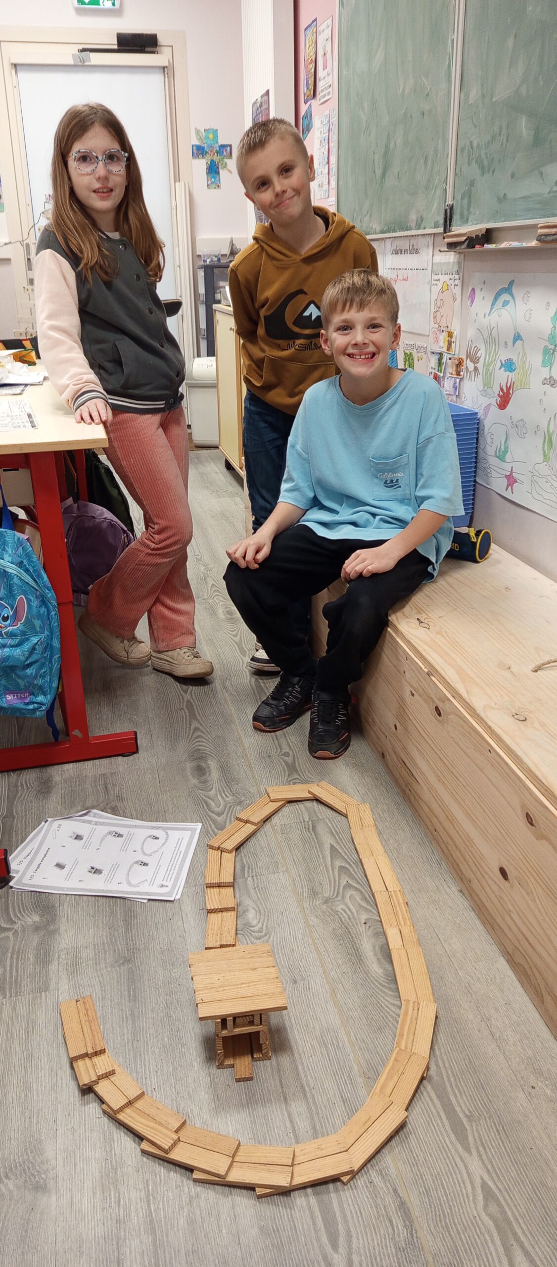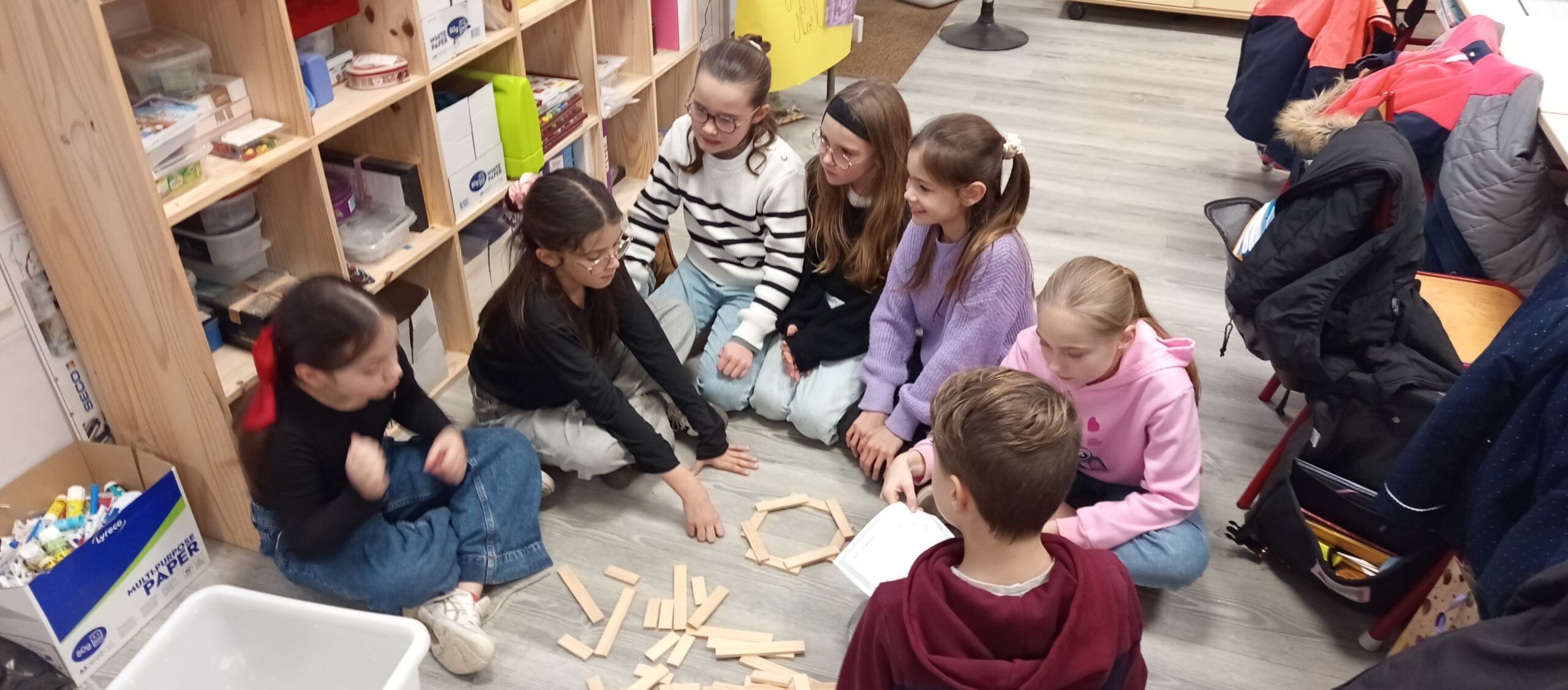 L’après-midi, les élèves de notre classe ont relevé un défi lancé par la Water Family et nos 2 nageurs Cloé et Mathieu. Bien qu’ils ne puissent plus nager, suite à une avarie de leur bateau, qui ne peut donc plus assurer leur sécurité,  l’aventure continue et ils nous envoient encore du travail et des défis.  Celui-ci consistait à fabriquer des animaux marins à l’aide de Kaplas. Les léèves ont beaucoup aimé cette activité et ont proposé de belles productions! Voir les photos qui accompagnent cet article.