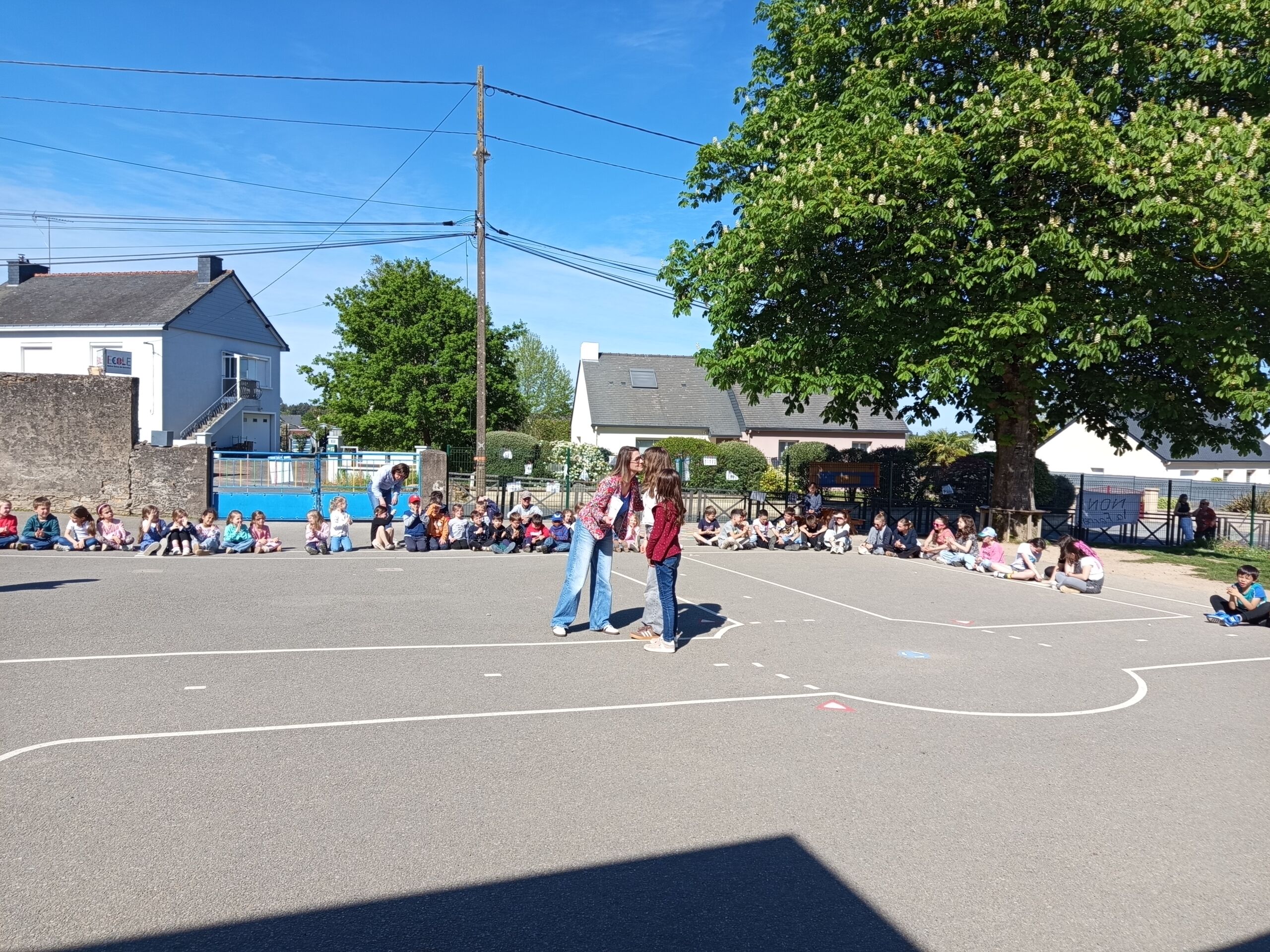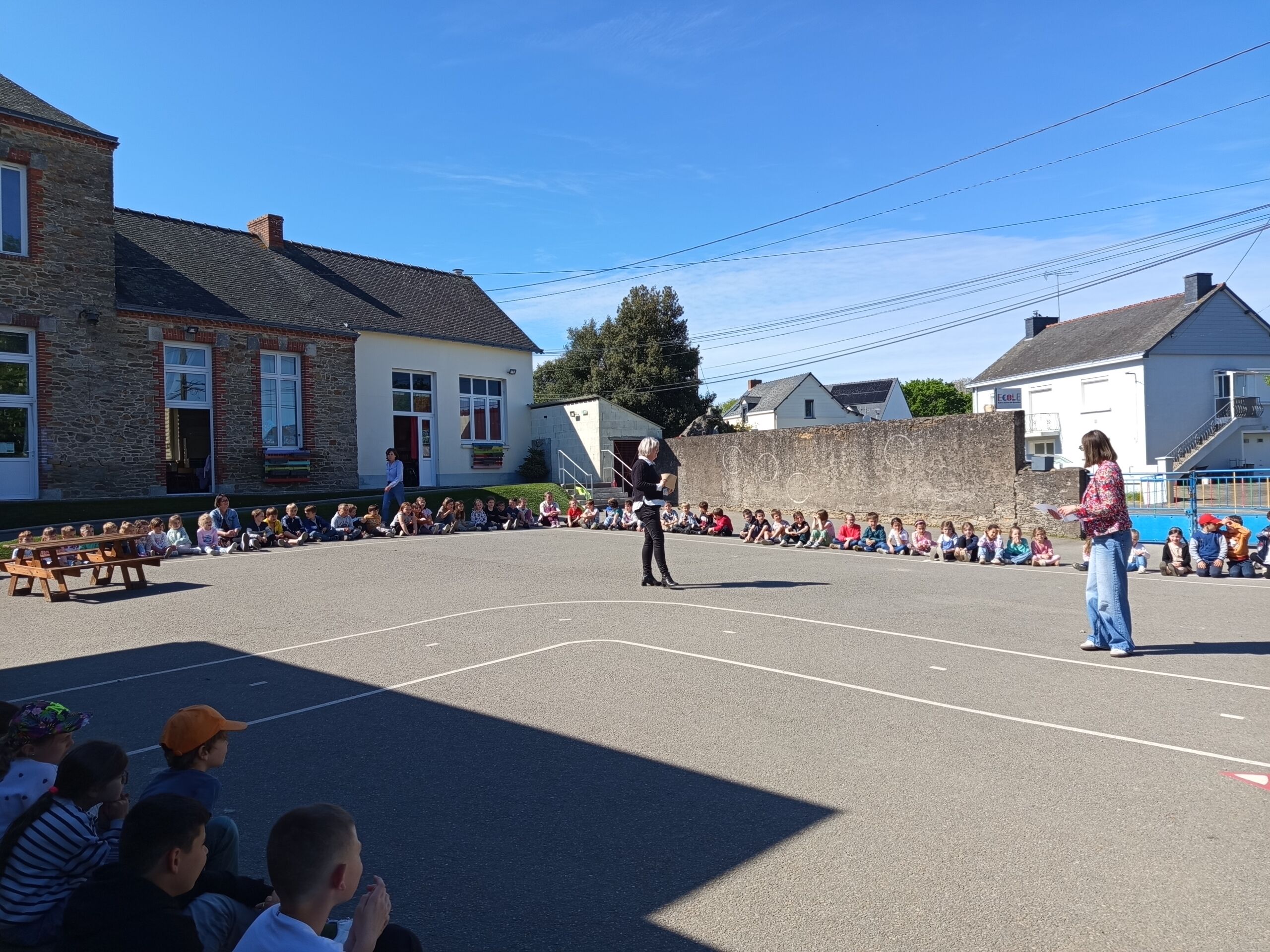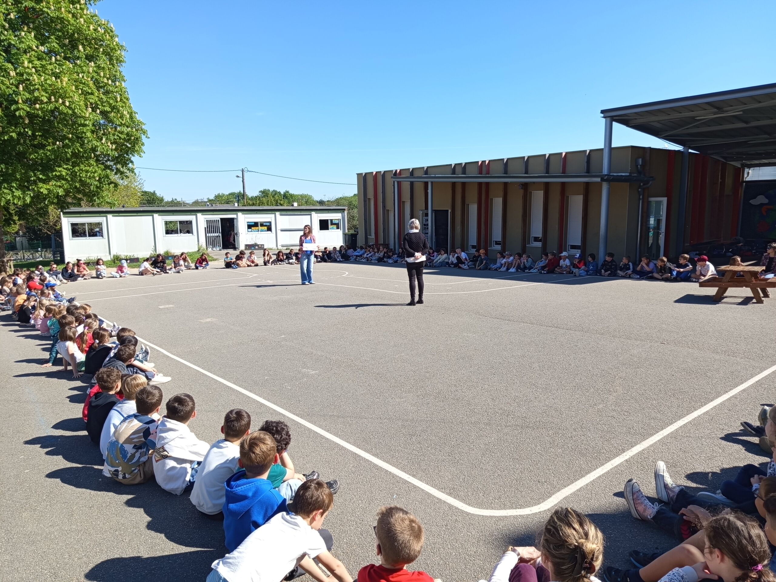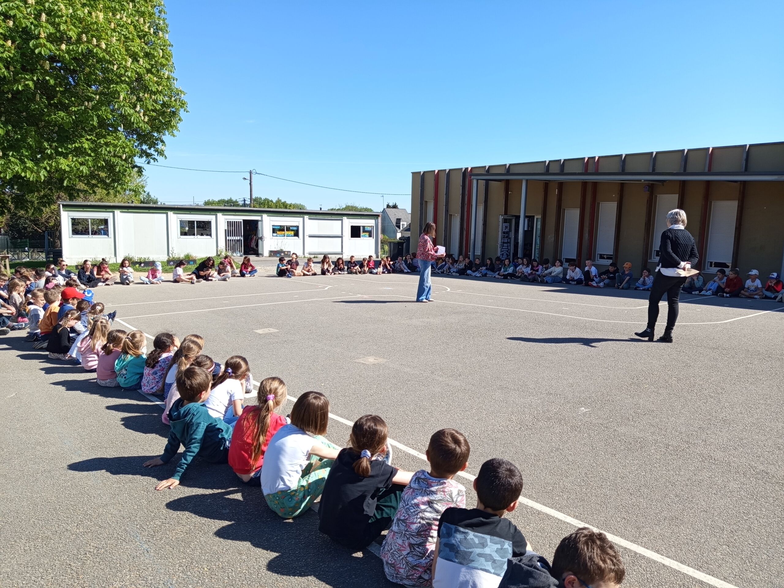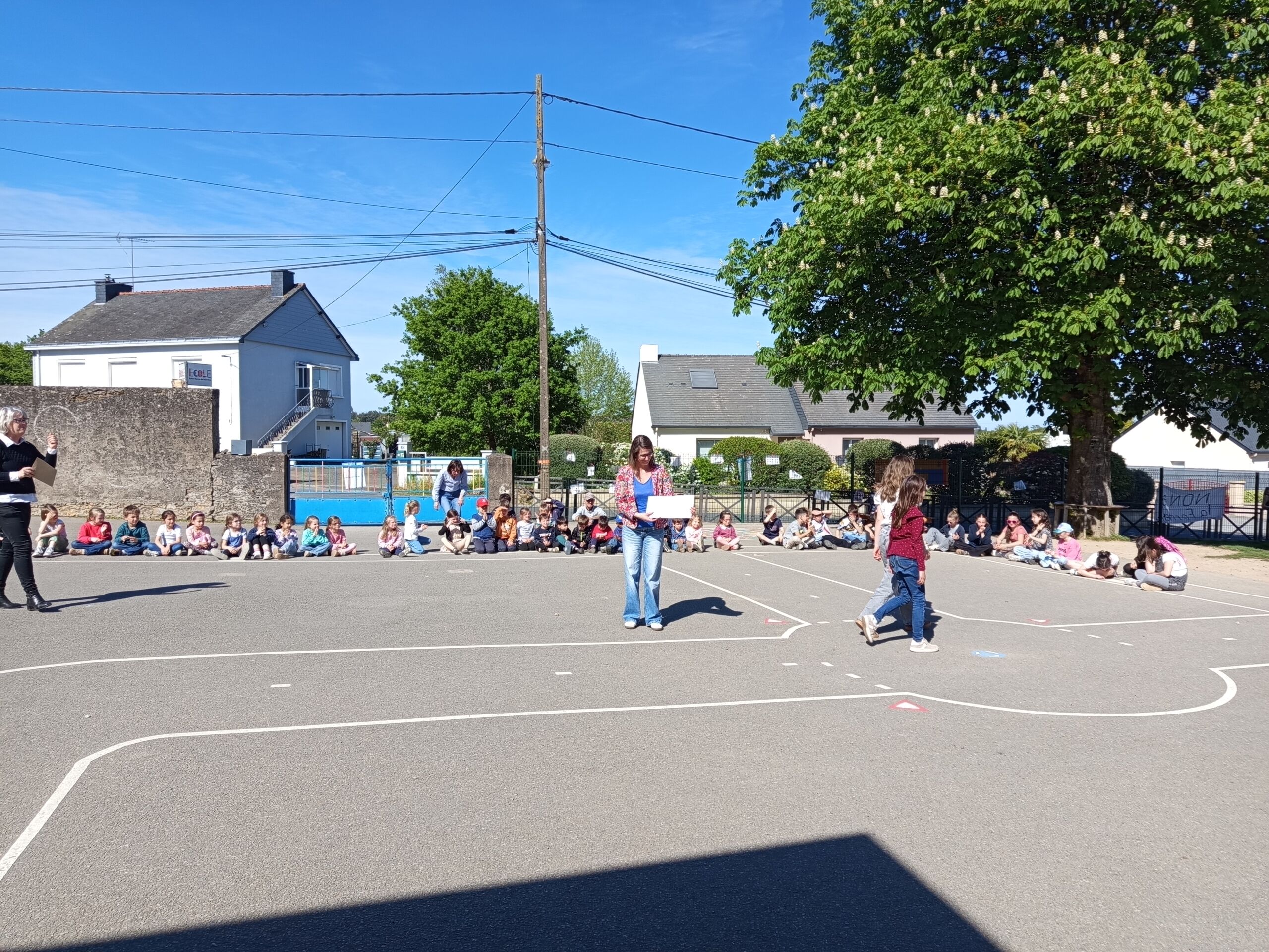Vendredi 10 avril, les CE1 et les CE2, puis les CM1/CM2 de Nathalie et de Céline, ont reçu, dans leur classe, Pauline David. Cette maman de Crossac est venue leur présenter l’association AOPA (association Onco Plein Air)  et discuter avec nos élèves des cancers pédiatriques , en leur parlant de son vécu personnel, puisque sa fille Aliénor a déjà été touchée deux fois par des cancers. Après avoir bien échangé aves les élèves, toute l’école s’est réunie sur la cour, afin de remettre à Pauline un chèque d’un montant de plus de 800€ . Cette association a vu le jour il y a environ 40 ans, grâce à une pédiatre oncologue du CHU de Nantes, qui est allée au Canada pour voir comment ils géraient la prise en charge des enfants malades. A son retour, elle a créé cette association qui permet aux enfants de bénéficier d’activités de plein air, de sorties et même de séjours à la montagne, pour les faire sortir de leur quotidien à l’hôpital et les faire sourire,tout simplement.